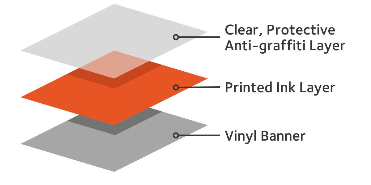 Anti-graffiti coatings work by forming a clear, protective layer over the printed ink on vinyl hoardings. This barrier seals the artwork and prevents spray paint or graffiti from bonding to the surface, making it easier to remove with a simple cleaning solution. This not only saves money on hoarding replacement or removal, but also reduces maintenance costs for preserving the hoarding's appearance.