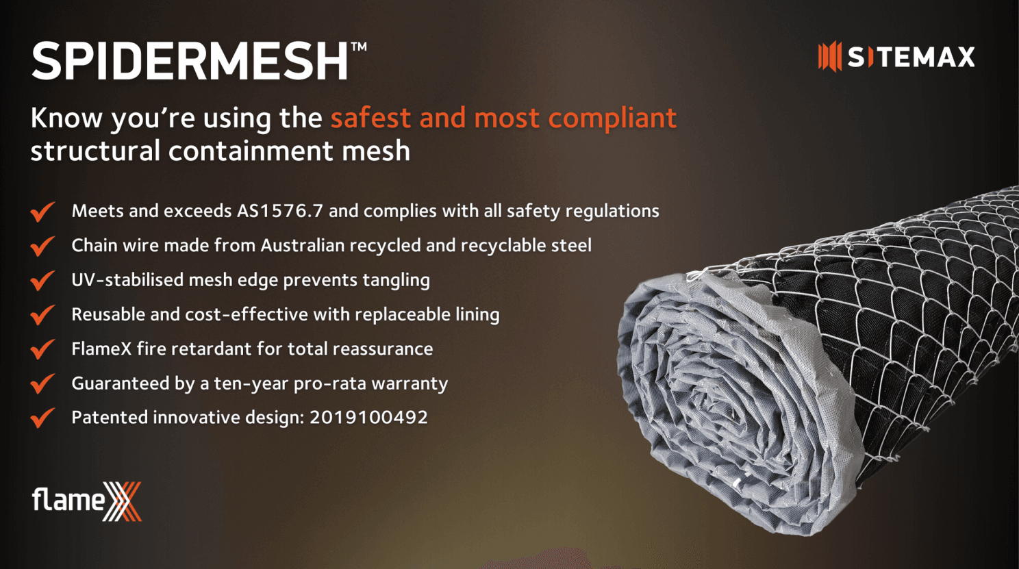Sitemax has supplied Australia’s construction industry with innovative containment solutions for over twenty years and our commitment to supplying the safest and most compliant scaffold containment products remains steadfast. One such groundbreaking product is Spidermesh, our patented structural containment mesh that not only meets but exceeds Australian Standard AS1576.7 safety requirements.